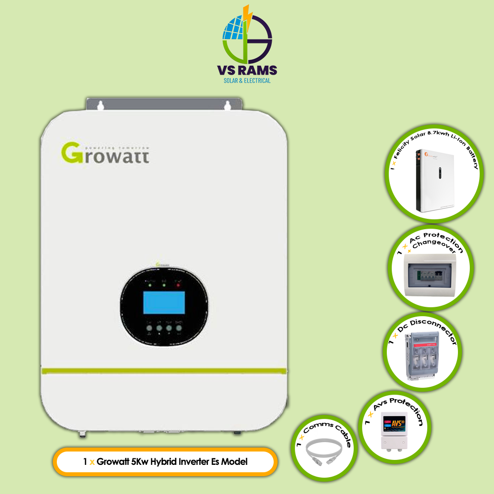 - 1 x Growatt 5Kw Hybrid Inverter Es Model