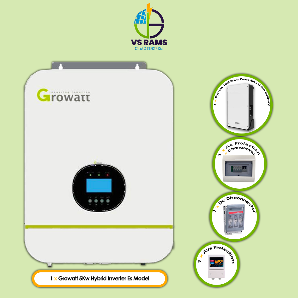 - 1 x Growatt 5Kw Hybrid Inverter Es Model