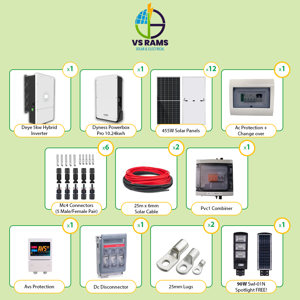 - 1 x Deye 5kw Hybrid Inverter.