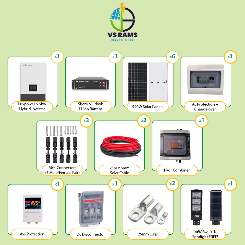- 1 x Luxpower 5.5kw Hybrid Inverter.