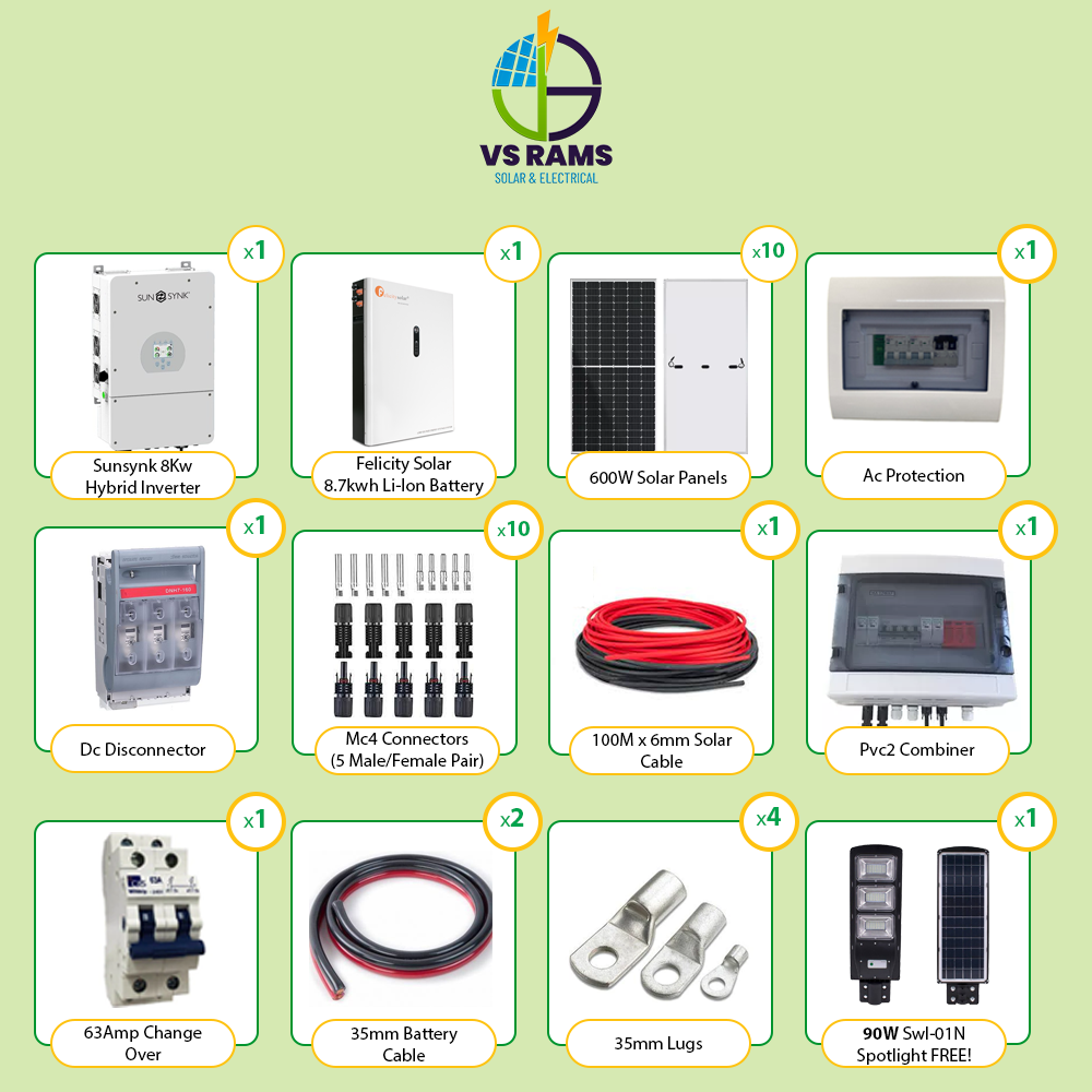 - 1 x Felicity Solar 8.7kwh Li-Ion Battery